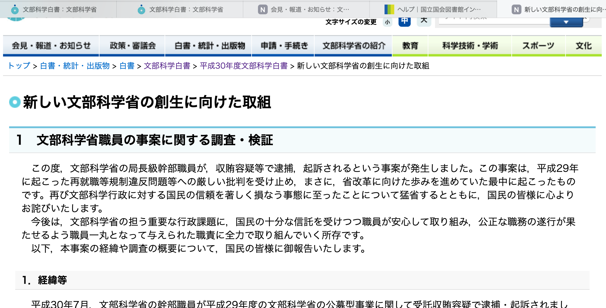 そのトップ記事が、何と、平成30年の「新しい文部科学省の創生に向けた取組」です。しかも、幹部職員の不祥事に対するお詫び文、愕然としました。子どもたちが、日本の教育に愛想を尽かしているのが分かる気がします。